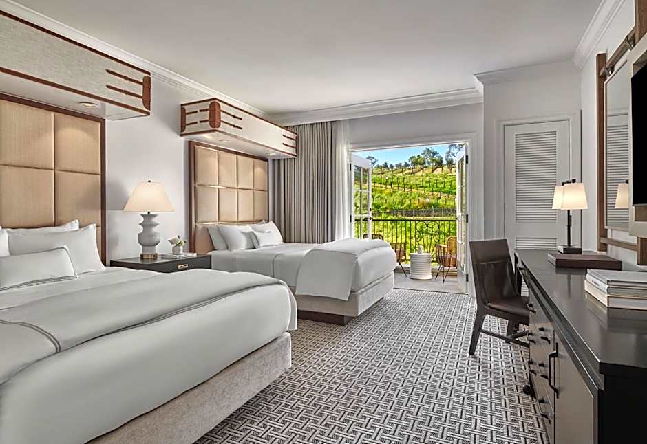 Featuring a dual-sided fireplace and a seating area with a sofa, this suite includes a spacious balcony with partial vineyard views. The oversize bathroom includes a glass-enclosed shower and a bath. A small refrigerator with a welcome bottle of wine, a Keurig® machine and an en suite safety deposit box are also provided.